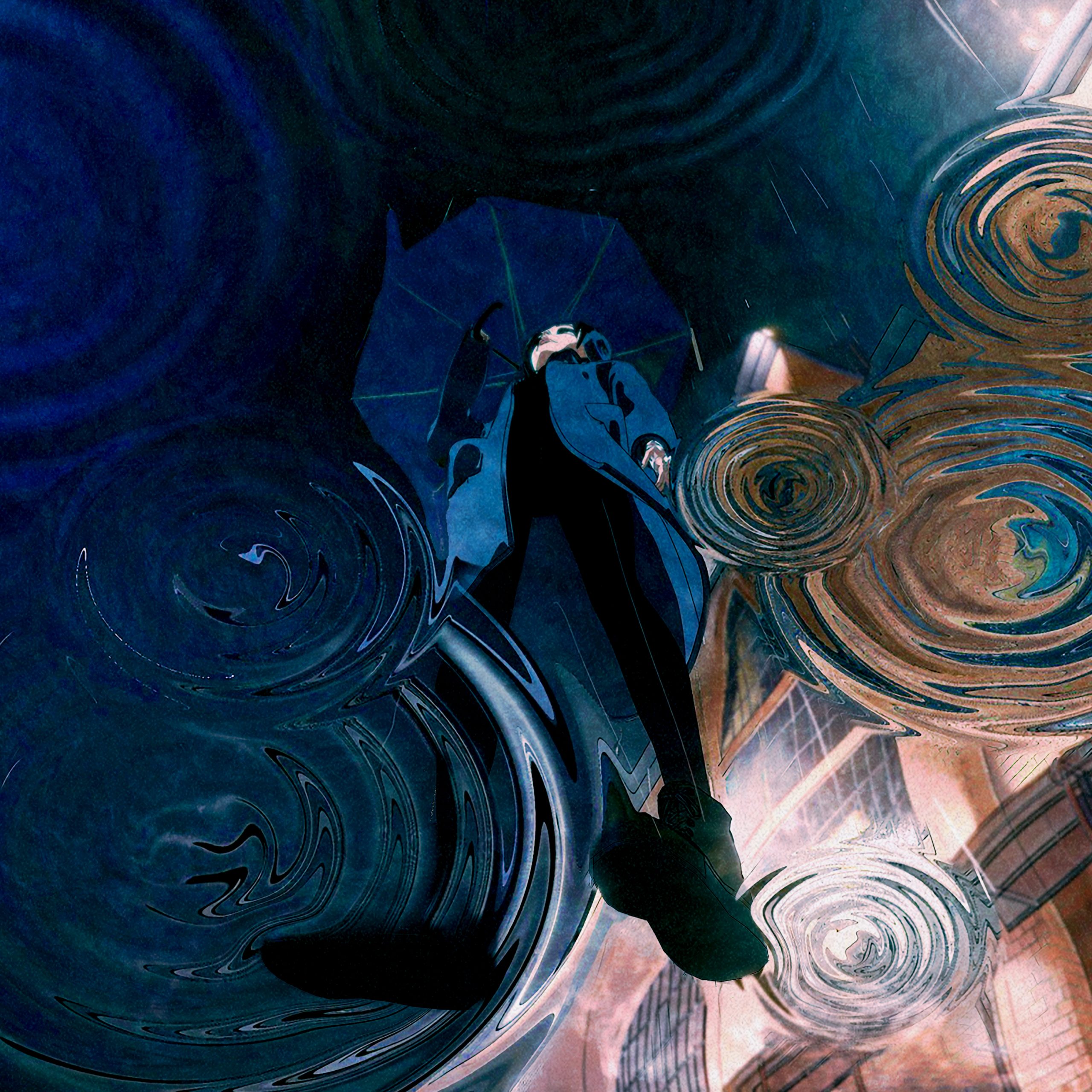 アートワークは3DCGならではの構図をと考え、地面から雨の波紋ごしの視点を採用。